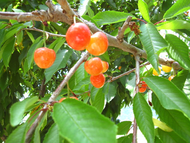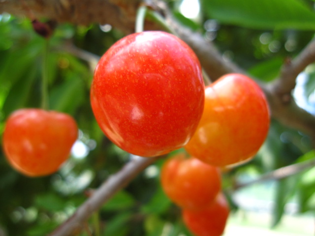 やっぱり美味しいサクランボ! 2010年06月16日 ついに、サクランボ狩り園がOPEN致しました。 【完熟の佐藤錦】 【こちらも佐藤錦】 【もう少しで完熟になる紅秀峰】 【紅秀峰 酸味と甘味がたまりません・・・】 お客様にと思っているのですが、美味しくてついつい摘まんでしまいます。そのくらいサクランボは美味しいです。 追伸梅雨に入って、カラッカラの畑にお湿りがありました。朝方には雨が止み、リンゴ園が霧に包まれ、田んぼは緑色のジュウタンのようになりました。 【私の一番好きな風景 「梅雨」】 «前 次» 店長日記