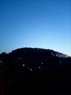 下は、果樹園全体を撮ってみました。点々と明るく、空は雲一つなく、奇麗でした。