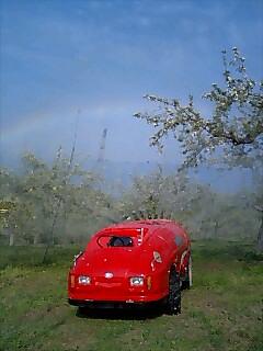 太陽とリンゴと虹 2009年05月09日 5月頭から、摘果剤(石灰硫黄合剤)を散布しました。日の出と共に、虹が橋を架けたので、一枚撮ってみました。あたり一面、温泉のような、匂い!!! «前 次» 店長日記