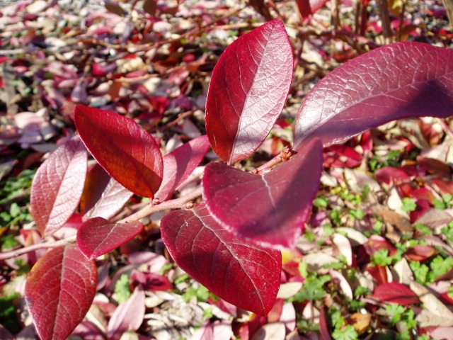 冬のブルーベリー園! 2009年12月14日 ちょっと、遅かったので紅葉を通り過ぎ、落葉してしまったのですが、ブルーベリー園も様変わりしました。【落葉してしまったブルーべりーの樹】 【赤くなったブルーベリーの葉】 葉っぱにもアントシアニンが含まれているということで、頭の良い方たちは、既にお茶のように加工して、簡単に煎れて飲める、「ブルーベリー茶」を販売しているようです。 冬場には土作り・チップ撒き・剪定をしたいと思います。来年の7月には、たわわに実ってくれないかなー。 «前 次» 店長日記
