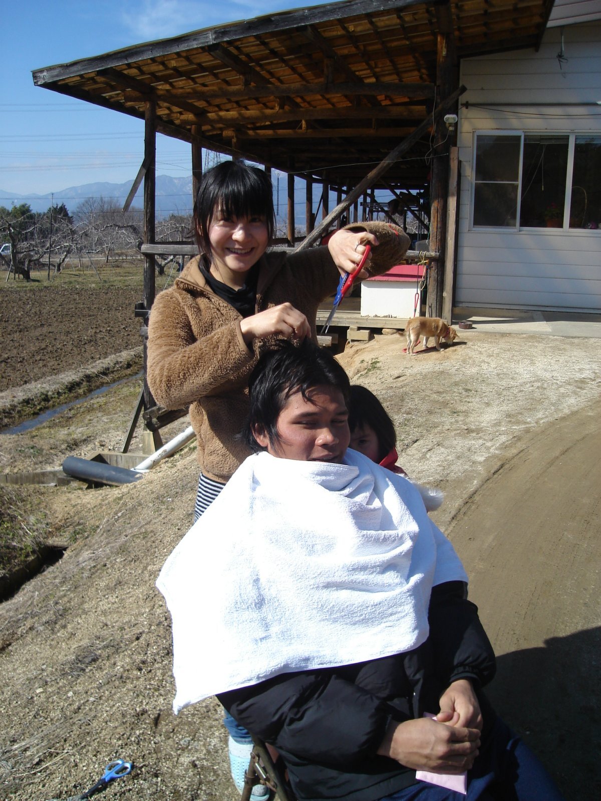 帰国に向けて嫁さんに切ってもらっている所】