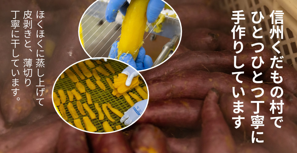 11月頃収穫した芋を2〜3か月間貯蔵し、芋の甘みを引き出しました。その芋を蒸して乾燥させました。 紅はるかのねっとりとした甘みが強い芋です。 ☆干し芋の健康効果☆ 生活習慣病の予防として干し芋に含まれる豊富な食物繊維やカリウムが「高血圧・脂肪異常・高血糖」の予防に効果があると示されています。